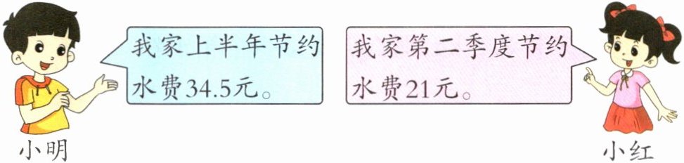 提示 上半年有 6 个月,第二季度有 3 个月,先求出小明家和小红家每月各节约了多少水费,再比较谁家节约的水费多。