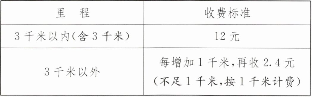 3千米以内收费12元;3千米以外每千米收2.4元。