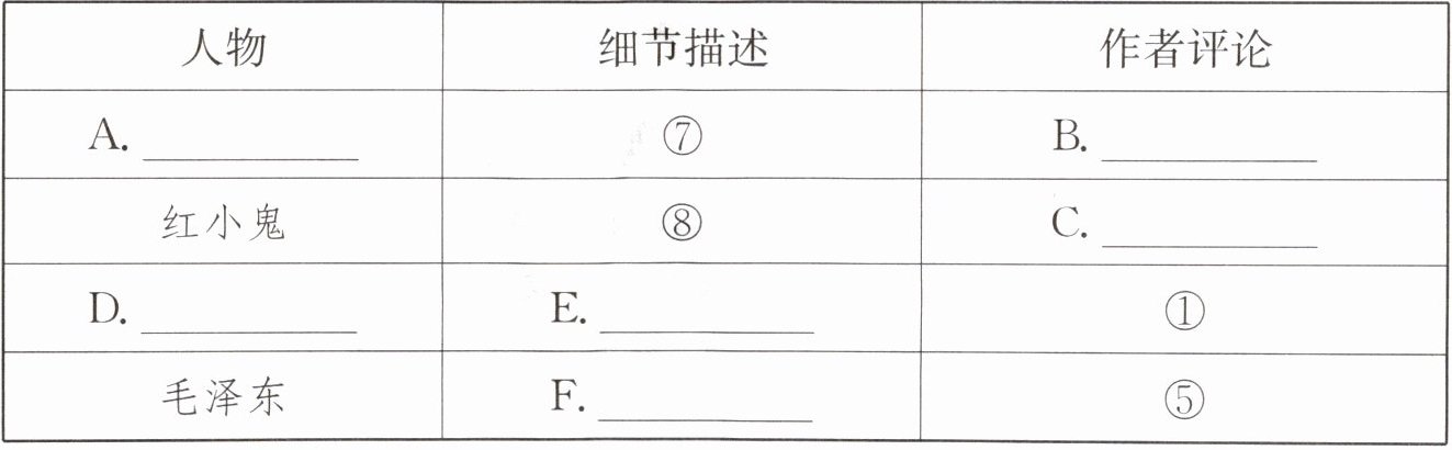 1. 请你仔细阅读筛选出的相关信息,将表格补充完整。(A、D两处填人名)