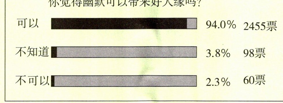 幽默常会给人带来欢乐,有助于消除敌意,缓解摩擦,防止矛盾升级。请看相关调查: