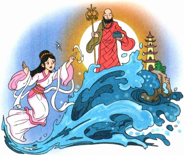 法海虽有点小法术,但他的心术却不正。看出了白娘子的身份后,他就整日想拆散许仙、白娘子夫妇,搞垮保和堂。于是,他偷偷把许仙叫到寺中,对他说:“你娘子是蛇精变的,你快点和她分手吧,不然,她会吃掉你的!”许仙一听,非常气愤,他想:“我娘子心地善良,对我的情意比海还深。就算她是蛇精,也不会害我,何况她如今已有了身孕,我怎能抛弃她呢!”法海见许仙不上他的当,恼羞成怒,便把许仙关在了寺里。