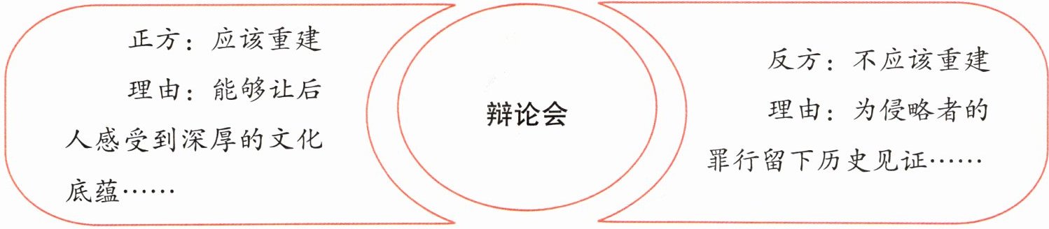 4 读完两篇选文后,你们班组织了一场以“应不应该重建圆明园”为论题的辩论会,你会支持哪一方的观点?请结合选文内容,分点罗列你的理由。(请答出两点)(5分)