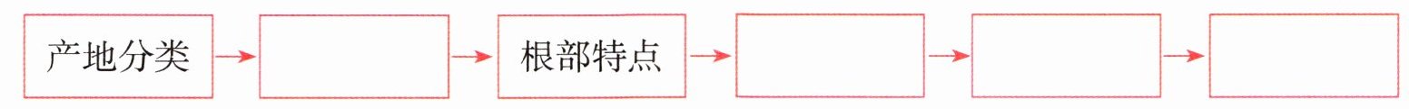 产地分类→□□□□→根部特点→□□□□→□□□□→□□□□