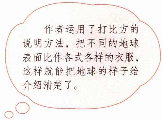 人有各种料子做成的衣服,穿起来有的凉爽,有的保暖。地球也有各式各样的衣服,五颜六色,绚丽多彩,而且会随岁月的更替而变易。地球特有的大气、水和生物,使它成为太阳系中独一无二的色彩丰富的行星。