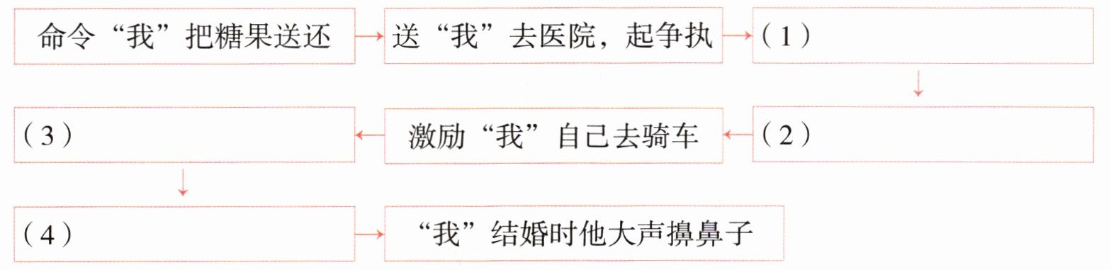 (4)______→“我”结婚时他大声擤鼻子