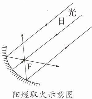 阳燧是中国古代取火用具。利用太阳光取火是运用光的折射和聚焦原理完成的(如图所示),故人们称之为阳燧。《周礼》记载周代有专门执掌用阳燧取火的组织,叫作“司烜(烜huǐ:火)氏”。