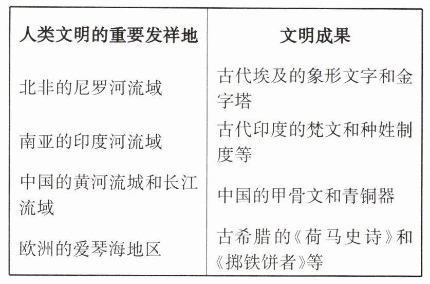 C 据材料信息可知,文明发祥地众多,古代世界不同地区出现了不同的文明成果,如埃及的金字塔、印度的梵文、中国的甲骨文和欧洲的《荷马史诗》等,这体现了古代文明具有多元性的特点。