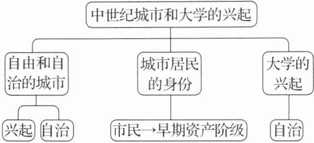 (2)争取自治的斗争:城市一般坐落在封建领主的领地上,受到领主的剥削和压迫。居民常用金钱赎买和武力斗争争取城市的自由和自治,实现形式是从国王或领主手里取得“特许状”。但取得自治的城市并不能完全摆脱国王和领主的控制。