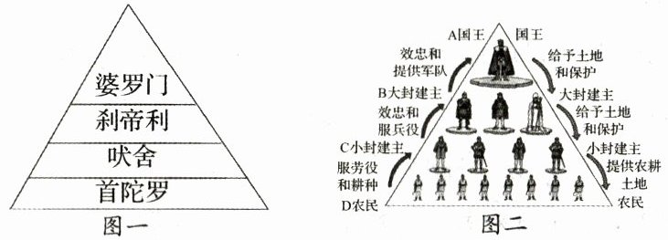 (1)图一:古印度的种姓制度;图二:中世纪西欧的封建等级制度。等级森严。