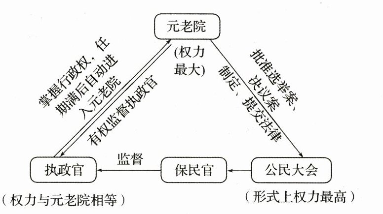 (3)在元老院、执政官和公民大会三种权力之间,存在严格的制约关系,彼此相互牵制,保持平衡。