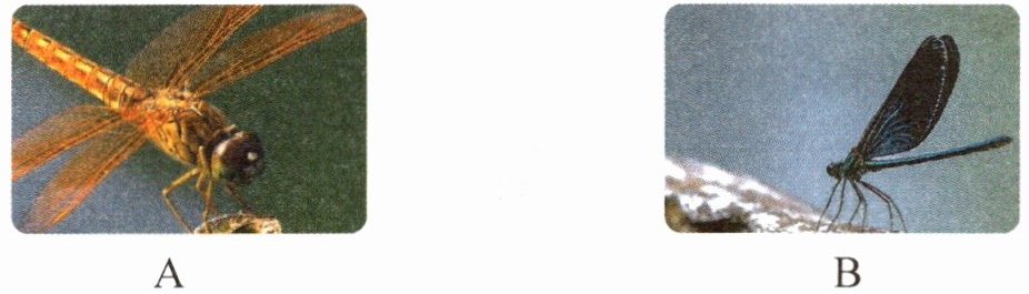 ⑤它落在花丛间、流水边,那姿态也是美丽的。它并合的翅膀,笔直地立在背上,翅膀上的网状脉络更加鲜丽透明了。