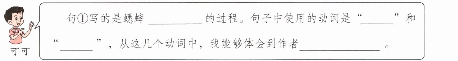 句①写的是蟋蟀______的过程。句子中使用的动词是“______”和“______”,从这几个动词中,我能够体会到作者______。