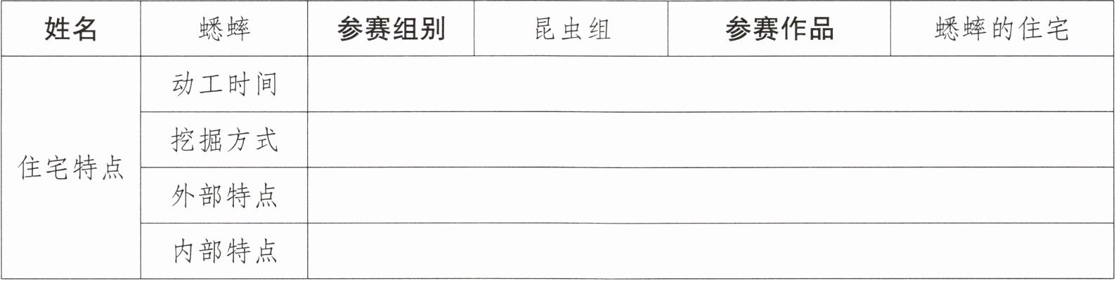 一、蟋蟀参加了动物界举办的建筑大赛,请你帮蟋蟀将报名表填写完整。