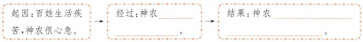 1.读神话故事,把神农尝百草的起因、经过、结果补充完整。