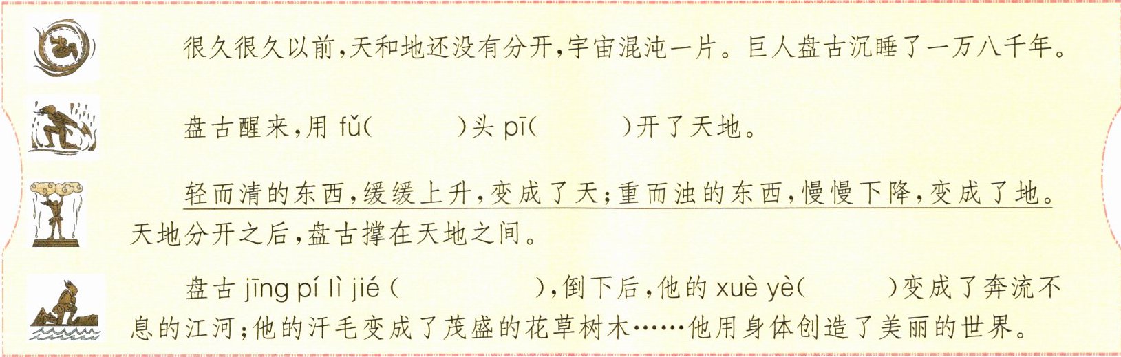 3.“他用身体创造了美丽的世界”,盘古的身体还会有什么变化,展开想象写一写。