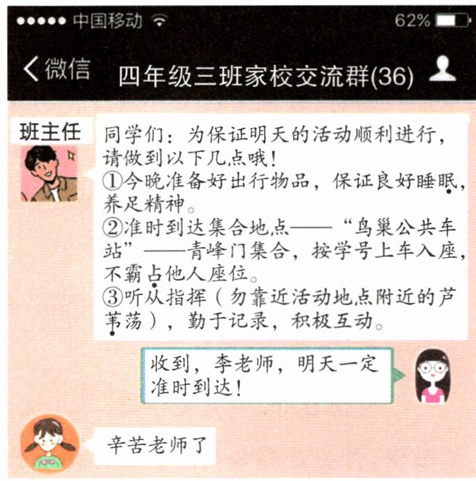 一、出发前夜,老师在家长群发布了“采风活动注意事项”,请你阅读一下。