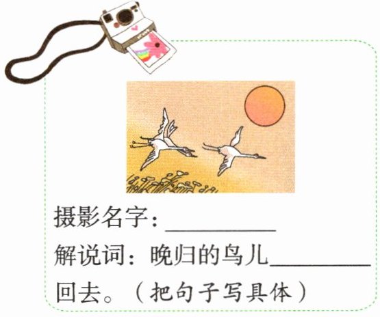 解说词:晚归的鸟儿______回去。(把句子写具体)
