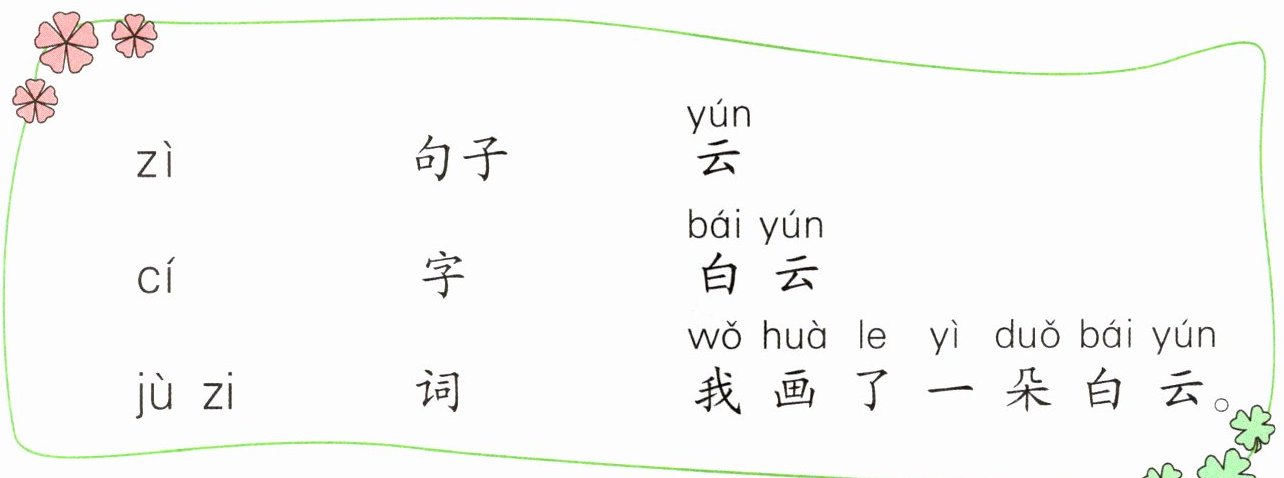 jù zi 词 wǒ huà le yì duǒ bái yún 我 画 了 一 朵 白 云。