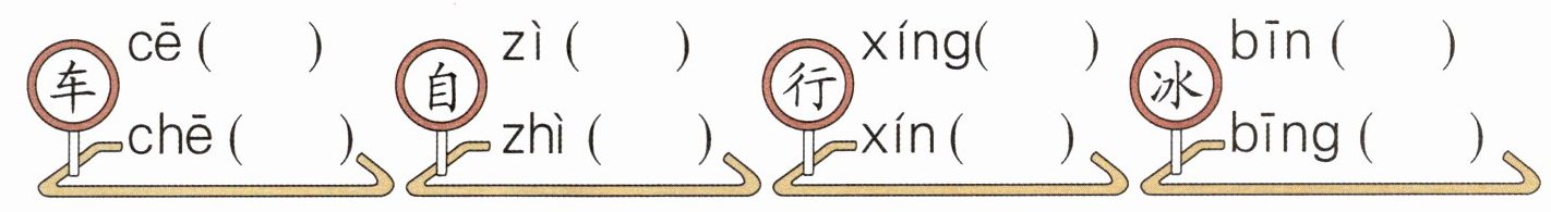 车 cē( ) 自 zì( ) 行 xíng( ) 冰 bīn( )