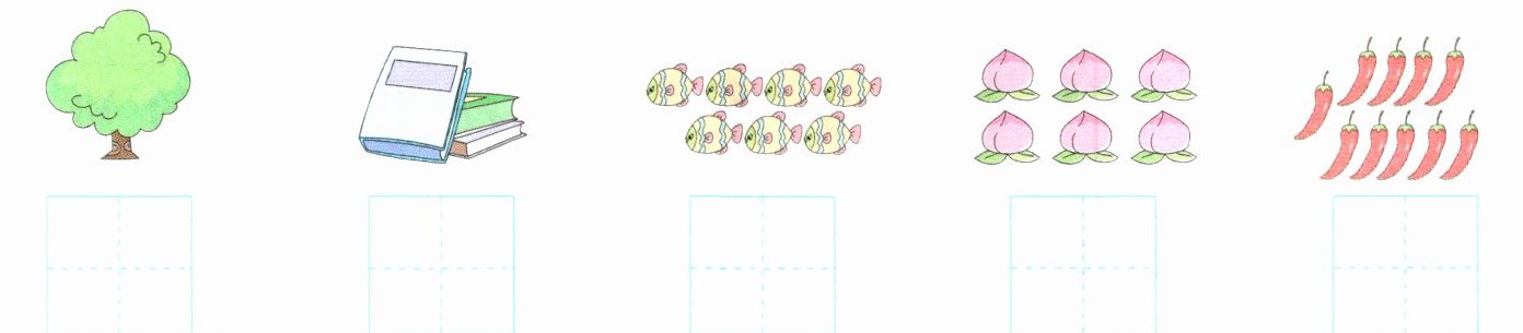三、森林里有许多新奇的事物,数一数每种事物的数量,写出相应的汉字。