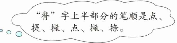 脊____ “脊”字上半部分的笔顺是点、提、撇、点、撇、捺。