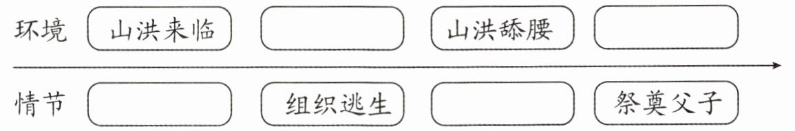 第一行:山洪渐涨 山洪退去 第二行:慌忙逃离 揪出儿子 党员密切联系群众