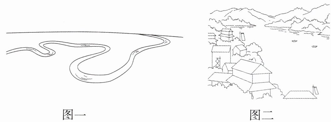 1. 看到图一这样的蜿蜒河道时,我所想到的诗句是刘禹锡《浪淘沙(其一)》中的“______,______”。