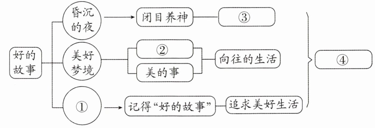 ①黑暗现实 ②美的人 ③梦见美丽的生活图景 ④梦境虽是心愿,美好终会实现(意思对即可)