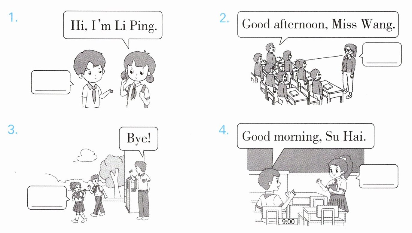六、看图,从方框中选择合适的句子补全对话,将序号写在横线上。