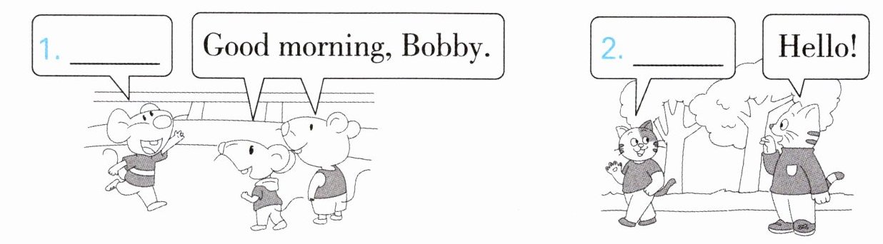 1. 喂,嗨 2. 哈啰,你好 3. 好 4. 早上 5. 我 6. 是(描写略)