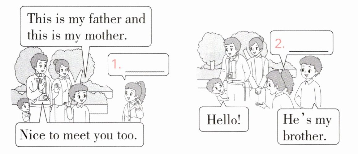 1.Come(and/but)meet my friends.2.I'm Yang Ling.(He/She)is Liu Tao.