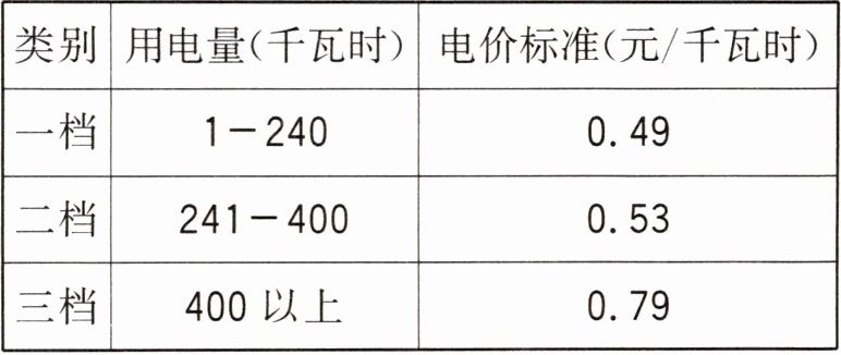 | 类别 | 用电量(千瓦时) | 电价标准(元/千瓦时) |