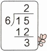 $\begin{array}{r} 2\\ 6\enclose{longdiv} {15}\\ 12\\ \hline 3\end{array} $