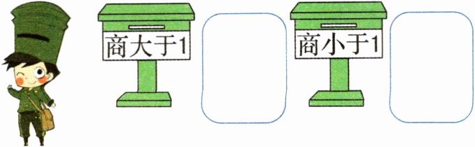 我的发现:当被除数大于除数时,商〇1;当被除数小于除数时,商〇1。(填“>”或“<”)
