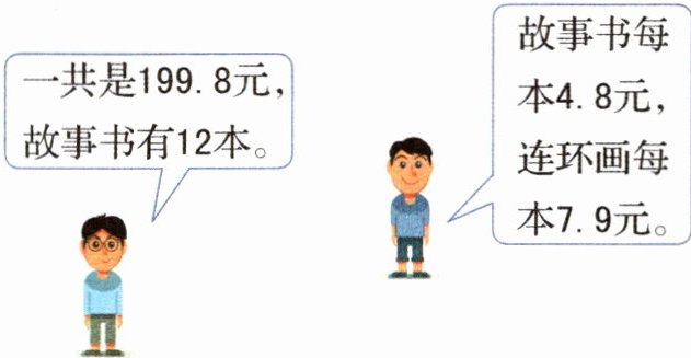 199.8-4.8×12=142.2(元)142.2÷7.9=18(本)答:一共买了 18 本连环画。