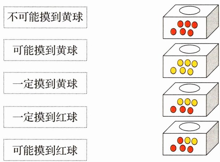 不可能摸到黄球 可能摸到黄球 一定摸到黄球 一定摸到红球