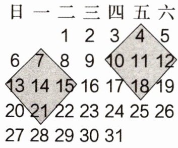 (2)如果正中间的数是 x,那么涂色方框中 5 个数的和是( )。