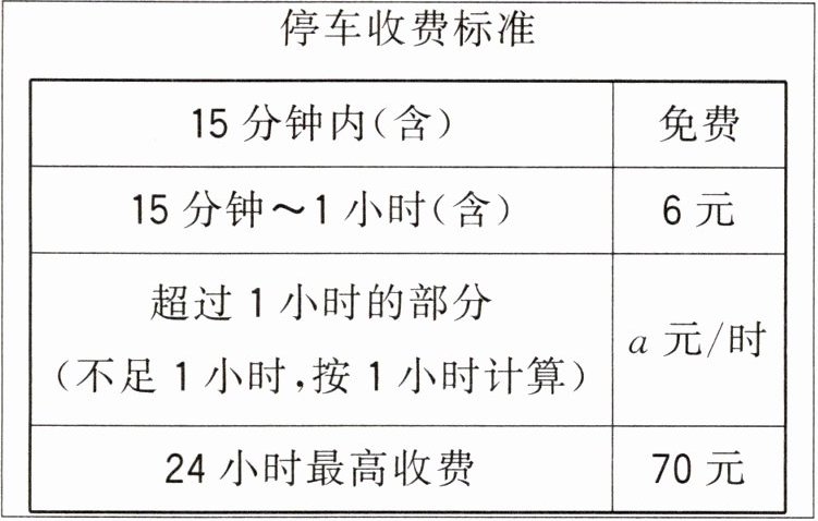 (3)王老师上午9:00进入停车场,13:30离开,需要支付停车费( )元,如果王老师共付停车费22元,那么a= ( )。