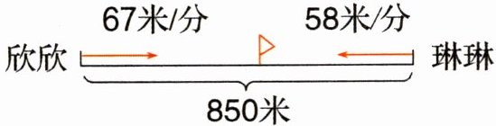 (2)淘淘和乐乐同时相约去看电影《熊出没》,两人分别从家骑车出发,相向而行。他们两家相距5.5 km,淘淘每分钟行驶220 m,乐乐每分钟行驶280 m,两人经过多少时间相遇?