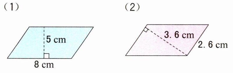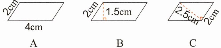 (3)淘淘量得一个平行四边形的相邻两边的长分别是5 cm和3 cm,还量出这个平行四边形的一条高是4 cm,这个平行四边形的面积是( )。