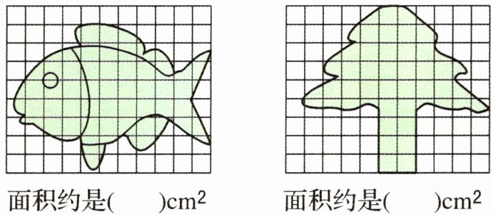 2 估算下面图形的面积。(每个小方格的面积是$1cm^2)$