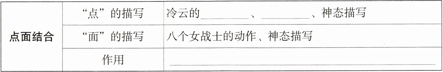 | | “面”的描写 | 八个女战士的动作、神态描写 |