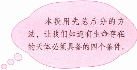 哪些天体上可能有生命存在呢?这个天体又必须具备什么样的条件呢?人们了解了生命起(原 源)的过程之后,认为至少应有这样几个条件:一是适合生物生存的温度,一般应在$-50~150^\circC$之间;二是必要的水分,生命物质诸如蛋白质、核酸的活力都和水紧密相关,没有水,也就没有生命;三是适当成分的大气,虽然已发现少数厌氧菌能在没有氧气的条件下生存,但氧气和二氧化碳对于生命的存在是极为重要的;四是要有足够的光和热,为生命系统提供能源。