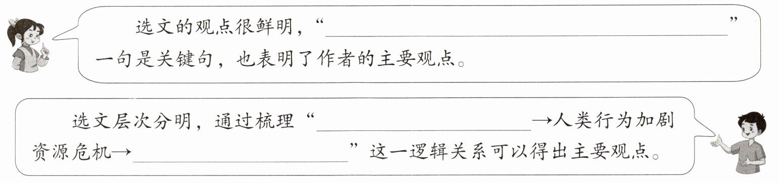选文层次分明,通过梳理“______→人类行为加剧资源危机→______”这一逻辑关系可以得出主要观点。