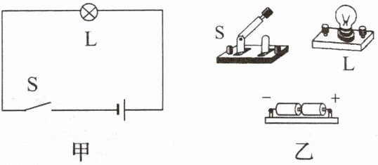 4.(由电路图连接实物图)根据如图甲所示的电路图,用笔画线表示导线,将图乙中的元件连接起来。