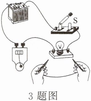 3.(电路的三种状态)如图所示,把小灯泡和电铃一起连在电路中,闭合开关,灯亮铃响,此时若把一根导线接在小灯泡的两端,则下列说法中正确的是( )