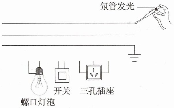 【解析】当开关S闭合后,灯泡不亮,这说明电路出现了断路故障;用测电笔检测插座的两个孔时,氖管均发光,这说明插座的左孔与相线是接通的,所以故障是B保险丝断路;当开关S断开时,用测电笔检测点C,C点通过灯泡与相线相连,所以氖管将发光。