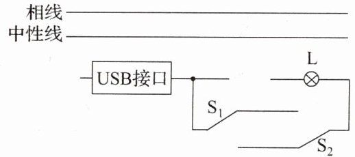 7.小旭家正在进行新房装修,需要安装一盏在一楼和二楼都能控制的楼梯灯,且有一个USB接口,他设计的电路如图所示。请把灯和USB接口正确接入电路。
