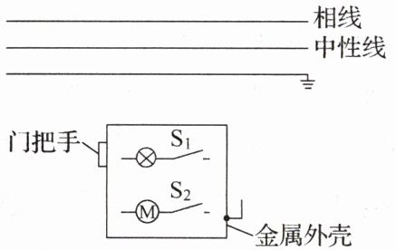 相线 中性线 门把手 S₁ S₂ 金属外壳