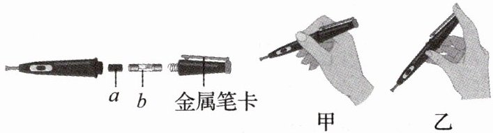 线接触造成的;如图所示是测电笔的结构,图中a为电阻、b为氖管,笔中的电阻与氖管的连接方式是串联
